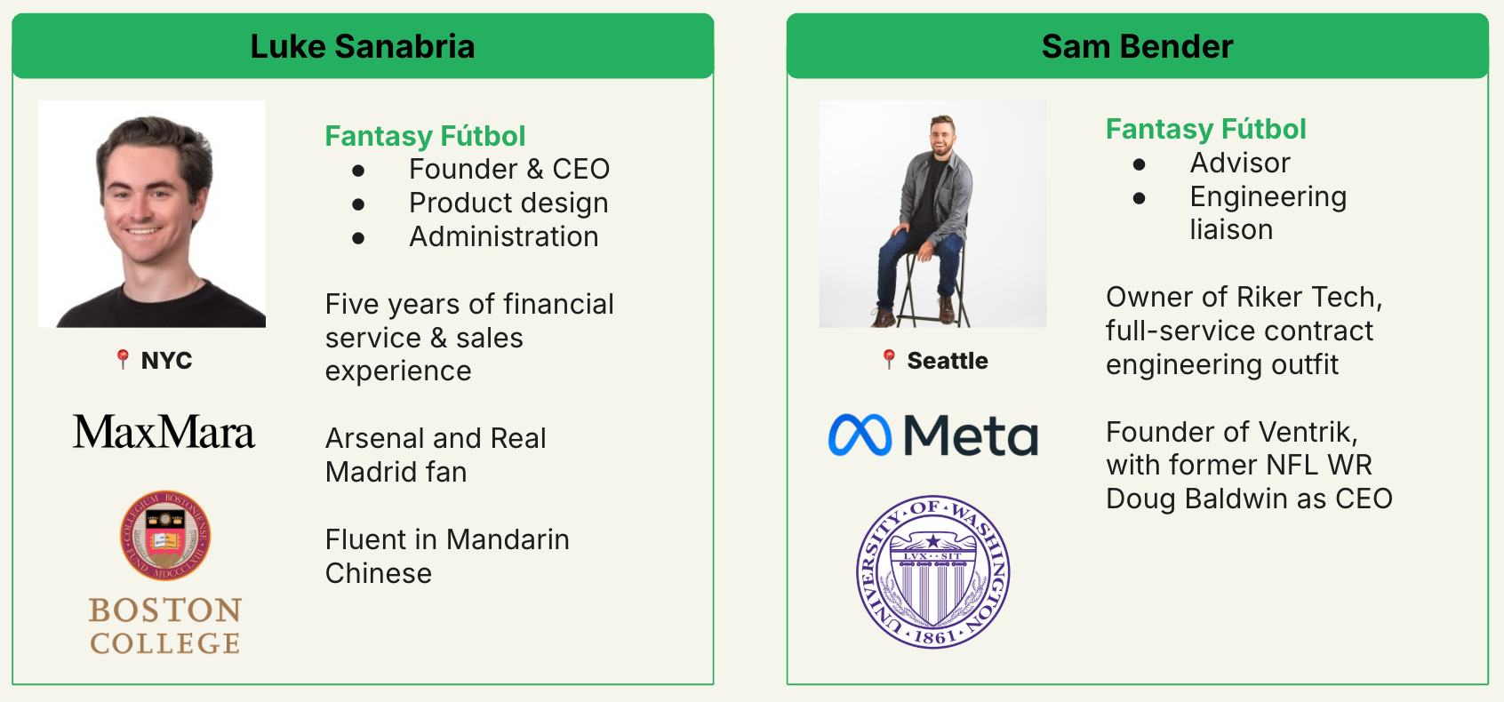 No fantasy sports game exists for the Big 5 ecosystem of soccer, the most important market segment of the world’s most popular game. The only genuine competition in fantasy soccer is a player-based fantasy game for the English Premier League alone (it’s called FPL). There is no game for the Spanish, German, Italian or French leagues, and there is no game for the domestic or European cups of all five countries. It is both shocking and lucky that the incumbent fantasy sports juggernauts have left this door open, and Fantasy Futbol will create the segment.